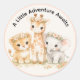 Cute Girl Safari Animals Lion Giraffe Elephant Classic Round Sticker
