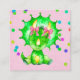 You will love this watercolor-painted green triceratops girl dinosaur sitting on a greenery swing on a pink watercolor background. Matching products are available.