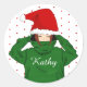 Cute Girl with Green Hoodie Santa Hat Christmas Classic Round Sticker