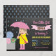 Cute Girl with Umbrella | Rainy Birthday Party Invitation