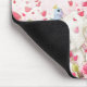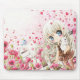 Cute girl with white cat on pink flowers field mouse pad