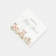 Cute girl baby shower napkins featuring a watercolor painted scene with woodland animals wearing pink flowers in a forest along with "Baby Shower" in a whimsical script font. These rustic baby shower napkins can be customised by adding the name of the mum-to-be.