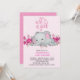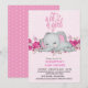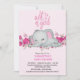 Cute Girls Baby Elephant Sleeping Floral Pink Invitation