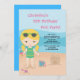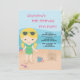 Start your pool party, beach party birthday party off right with our cute summer splash swimming pool party Birthday Party invitation featuring a beach scene with a blonde girl with a sandcastle & cupcake. Perfect for a girls birthday or for all summer pool & beach get togethers. Fully customisable by you with your information. Graphics by Corazón Dulce at MyGrafico