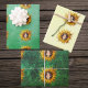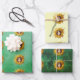 This set of wrapping paper sheets have a big festive yellow sunflower with the cute face of a smiling girl in the centers on shades of greens and yellows.