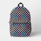 Cute Girls Pastel Rainbow Black Chequered Pattern Printed Backpack