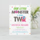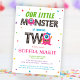 Unleash the fun with this Cute Girls Pink Monster 2nd Birthday Party Invitation! "Our little monster" birthday invitations are a digital template, so all you need to do is just add your party info and get ready for a monstrously good time – personalise, order now and let the celebrations begin!