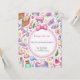 A modern and stylish invitation to a young girls spa birthday party. A cute colourful background with all things spa related for young girls to indulge in. Makeup, slippers, bows, potions and a cute border framing the text for your sleepover party invitation. This invitation is ready to be customised with the party information on the front and back as you like.
