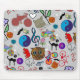 A beautiful girly pattern with some different graphic pictures. Flowers, cats owls musical notes, bicycles, ying-yang... multi-coloured compositon