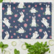 This cute design features white Easter bunnies with a pink flowers on a navy blue background
