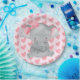 Add this cute and girly baby elephant with pink bow paper plates to your birthday party table. These will add so much cuteness to your party decor. Pink hearts pattern background are adorable