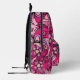 The printed design of this backpack is truly a feast for the eyes. It features an all-over pink floral pattern that exudes a sense of freshness and elegance. The flowers and the hearts, in varying shades of pink, are intricately detailed, giving the design depth and richness. The floral pattern is set against a light pink background, which enhances the vibrancy of the darker pink hues. This design transforms the backpack from a simple accessory into a stylish statement piece.