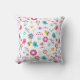 Cute pattern of birds, bees and flowers on colourful pillow.