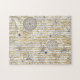 Cute Girly Grey Floral Doodles Gold Stripes Design Jigsaw Puzzle
