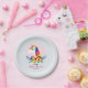 Cute Girly Magical Unicorn and Flowers Baby Shower Paper Plate