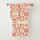 Cute Girly Modern Pink Chequered Icons Pattern Bath Towel Set