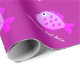 Cute girly pink fish cartoon girl's Birthday Wrapping Paper. Personalised giftwrap for children. Funny sea animal design. Fun wrapping supplies for babyshower, Christmas or Birthday. Add your own name or quote. Customisable background colour.