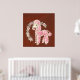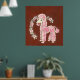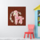 Cute, whimsical pink poodle puppy dog. He has a happy smile and is surrounded by pretty feminine pink roses. Girly, fun. and fashionable.