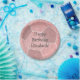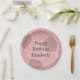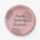 These fun soccer birthday party paper plates feature a minimalist soccer ball graphic (represented by the soccer ball's seams in white and slightly darker pink for the typically black panels) overlying a chic, pink digitally created texture, upon which you can customise the text in any custom colour - by katz_d_zynes
