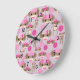 Cute Girly Pink Sock Monkey Girl Pattern Collage Large Clock