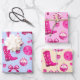 Cute Girly Preppy Pink Christmas Blue Beige Wrapping Paper Sheet