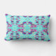 Cute Girly Purple Flower Pattern on Aqua Blue Lumbar Cushion