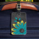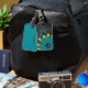 A super cute luggage tag created especially for the ladies! Faux chalkboard texture look background with a retro doodle boho flower in bright colours of teal and lime green. A coordinating blackboard flower centre circle can easily be personalised with white handwriting style text to look like chalk with little dots on the ends of the letters. The reverse side is matching teal with basic contact information just incase your luggage gets lost. The perfect gift for the traveller! Also great for camera bags or sports duffels.