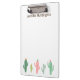 This design features cute watercolor succulent cactus shapes in pink, orange, red, and green. Personalise this clipboard with the name of your choice and customise the font and colour as you please. Other colours and designs are available. Please contact us and we'd be happy to assist you.