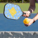 Play in style with this cute girly sunshine and clouds patterned Pickleball paddle with your personalised monogram initial or name. This cute girly sunshine and clouds personalised pickleball paddle features a hand drawn repeating pattern of fun cute sunshine and clouds with lots of fun texture and a great sky blue colour that is calming but also playful. Bring the outside sky into your everyday life with this personalised monogram cute girly sunshine pickleball paddle. This girly sunshine and clouds pattern is an original pattern made by OhMyStarling! This sunshine and clouds pattern pickleball paddle will keep you looking cute with it's bright blue and yellow hues and fun textured patterns. Add your own name or monogram on this personalised pickleball paddle by clicking "personalise this template".