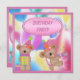 Cute teddy bears birthday party invitations for girls with whimsical cartoon bears with pink party hats and gift boxes. One of them is blowing a pretty purple trumpet. There are big colourful balloons in the background with a pretty pink and purple border. These fun, happy, classy invites are decorated both sides. Chic, trendy, modern invitations. Children will love these adorable animal characters. Please note: All invites on Zazzle have flat printed images. Some elements purchased from Sharenmoments - Text is fully customisable to meet your needs. If you need assistance customising your product please contact me through my store. I will be happy to help.