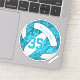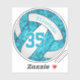 This turquoise blue and white girly volleyball sticker features a floral kaleidoscopic pattern blended with the turquoise blue volleyball panels and an artsy abstract swirl pattern blended with the white panels - her name and jersey number are customisable - by katz_d_zynes