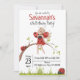 Cute and girly 6th Birthday invitations featuring an adorable girl ladybug sitting on a tree branch, other two ladybugs company in this whimsical and magical garden. Personalise this beautiful birthday party invitation with girls name and party details such as date, time and venue.
