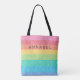 Cute Glitter Rainbow Stripes Colourful Pattern Personalised Name Tote Bag