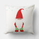 Cute Gnome Dressed in Green and Red and Stars on White Pillow.