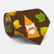 Cute Gnome & Beautiful Autumn Leaves on Brown Tie