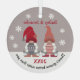 This adorable ornament has two cute gnomes and snowflakes in lovely red, pink, grey, and white colours, and a striped pattern. It says "There's gnome better sister than you" The item can be personalised with the year and names.
