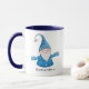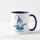 Cute personalised Christmas mug with cheerful gnome in blue.