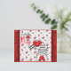 For Valentines Day this year, anyone would love to receive this cute love bug postcard featuring an adorable gnome illustration with balloons and a ladybug and red glitter background!