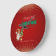 Cute Gnome Pine Tree Confetti Red Merry Christmas Large Clock