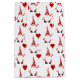 Cute cartoon illustration of a Nordic St Valentine's day gnome in red holding a heart shaped balloon.