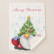 Cute Gnome with Christmas Tree Hat and Gift - Fun Sherpa Blanket