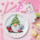 Cute Gnome with Christmas Tree Hat and Gift Paper Plate