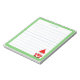 Cute gnome holding a heart with green frame lined Notepad. Text can be personalised. Great for kids and adults!