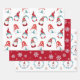“Gnome sweet gnome.” This wrapping paper set of three features whimsical, Christmas gnomes. Sheet number one sports three different cute, fun, gnomes in red and dusty blue in a random, repeating pattern. Sheet number two has ice blue and white snowflakes arranged in a playful, random pattern overlaying a red background. And sheet number three boasts “Gnome sweet gnome” copy, an adorable gnome, as well as your custom family name, all framed with Scandinavian designed dusty blue, red and orange floral wreaths overlaying a white background. Personalise with your family name. Feel the warmth and joy of the holiday season whenever you use this fun, simple, modern, custom Christmas wrapping paper. Matching cards, stickers, pillows, home décor, and more are also available. Turns a great present into something even better!