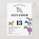 If your daughter or son loves animals then this fun animal themed birthday party budget invitation postcard is a great place to start planning the perfect birthday party celebration. Cute goats in vibrant watercolor pink, purple, blue, orange, yellow and aqua hues. A cute farm animals 13th birthday party budget invitation postcard with baby goats and goats standing on goats. This fun party invitation is easy to personalised to create a unique party invitation suitable for children and adult goat lovers. Original artwork by artist Catherine Sweetman