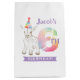 Make their 6th birthday even more magical with this custom farm animal gift bag! Featuring a hand-drawn baby goat wearing a rainbow party hat, bold pastel number six, and colourful confetti sides, this charming design is perfect for a petting zoo, barnyard, or goat-themed celebration. Personalise it with the birthday child's name to add an extra special touch to your party presentation.