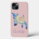 Cute jumping baby goat in lotus pink purple, teal, aqua and yellow brush strokes. A cute animal phone case design is easy to Personalise, just add your name or a family member or friend's name by to create a unique phone case you won't find on the high street. You can be sure your friends will enjoy this colourful and fun jumping baby goat because lets face it, goats just make us smile. Colourful jazzy goat artwork by artist Catherine Sweetman.