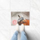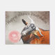 On a champagne coloured watercolor background, this fresco style painting of a cute goat blowing a bubblegum bubble says "Happy Hooves Goat Farm" (You can change the Welcome text) Goat Lovers Welcome Mat - great for goat shows too