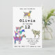 A collection of colourful, psychedelic goats in vibrant pink, purple, blue, orange, yellow and aqua with pigmy goat, baby goat and goats standing on goats. A cute multicolored farm animal birthday party invitation. This fun farm animal party invitation is easy to personalise to create a unique party invitation suitable for children and adult goat lovers. Original artwork by artist Catherine Sweetman