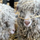 A photographic design of two very cute angora goats with a straw decoration.